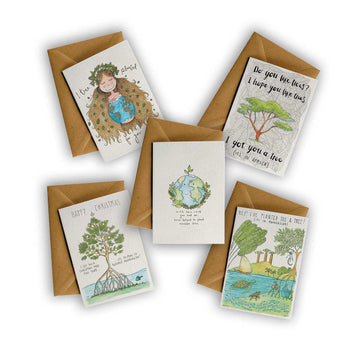 5 Cards = 5 Trees! For every single Greeting Card you buy from us 1 native tree is planted, nursed and raised towards permanent reforestation in Madagascar. See Our Mission page for details.